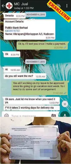 Guna WhatsApp Jual Sijil Cuti Sakit Palsu - Semasa - Portal Utama