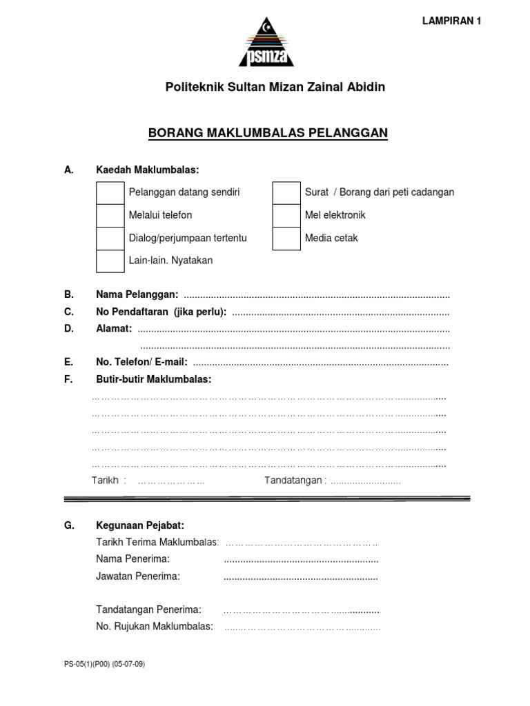 Contoh Borang Maklum Balas Program / MOshims: Perkhidmatan Contoh